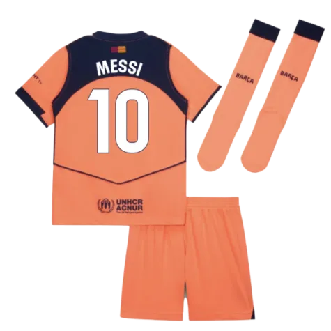 Official Lionel Messi football shirt. This is the NEW Barcelona Third Mini Kit for the 2025-2026 season which is manufactured by Nike and is available in all Childrens sizes.