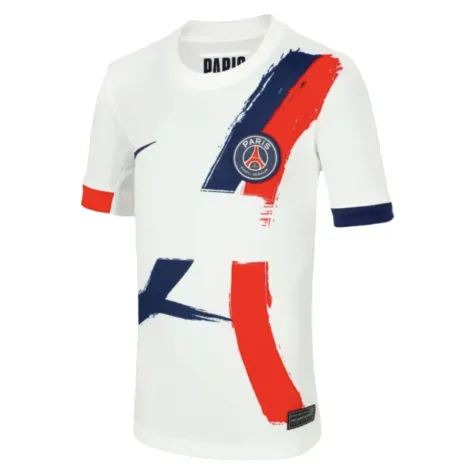 Step into Parisian football heritage with this stunning PSG away shirt for young supporters. The 25/26 Away kit pays homage to an iconic Club shirt worn by Parisians during the 1990-91 and 1991-92 seasons, while also embodying the innovative spirit of the club's new generation. Featuring two red and blue stripes on a white background, the shirt takes inspiration from the iconic silhouette of the Eiffel Tower.