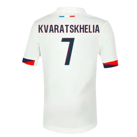 Official Khvicha Kvaratskhelia football shirt. This is the NEW PSG Away Shirt (Sponsorless) - Kids for the 2025-2026 season which is manufactured by Nike and is available in all Childrens sizes.