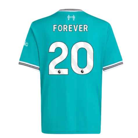 Official Forever 20 football shirt. This is the NEW Liverpool Third Shirt (Kids) for the 2025-2026 season which is manufactured by Adidas and is available in all Childrens sizes.
