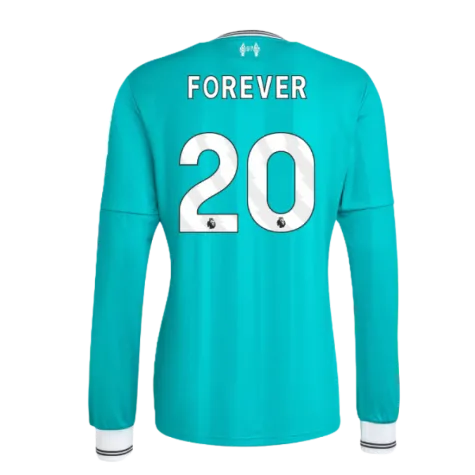 Official Forever 20 football shirt. This is the NEW Liverpool Long Sleeve Third Shirt for the 2025-2026 season which is manufactured by Adidas and is available in all Adult sizes.