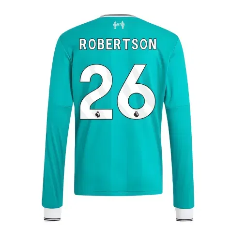 Official Andrew Robertson football shirt. This is the NEW Liverpool Long Sleeve Third Shirt (Kids) for the 2025-2026 season which is manufactured by Adidas and is available in all Childrens sizes.
