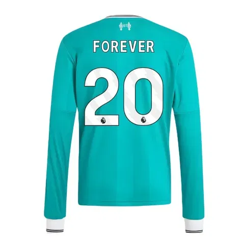 Official Forever 20 football shirt. This is the NEW Liverpool Long Sleeve Third Shirt (Kids) for the 2025-2026 season which is manufactured by Adidas and is available in all Childrens sizes.