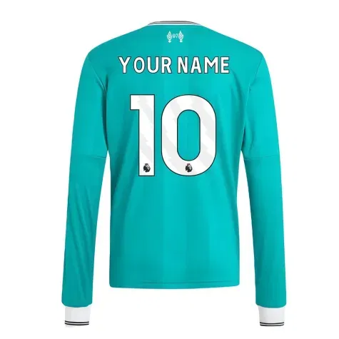 Official Your Name football shirt. This is the NEW Liverpool Long Sleeve Third Shirt (Kids) for the 2025-2026 season which is manufactured by Adidas and is available in all Childrens sizes.