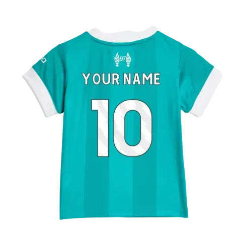 Official Your Name football shirt. This is the NEW Liverpool Third Baby Kit for the 2025-2026 season which is manufactured by Nike and is available in all Baby sizes.