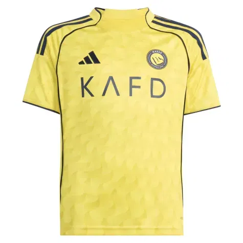 Show your support for one of Saudi Arabia's most prestigious clubs with this official Al-Nassr home shirt for the 2025-2026 season. Crafted by Adidas, this authentic replica jersey captures the essence of the team's iconic style whilst delivering the comfort and performance young fans deserve.