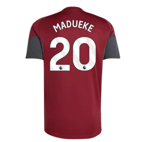 Official Noni Madueke football shirt. This is the NEW Arsenal EU Training Jersey (Burgundy) for the 2025-2026 season which is manufactured by Adidas and is available in all Adult sizes.