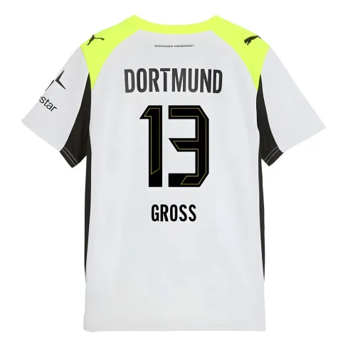 Official Pascal Gross football shirt. This is the NEW Borussia Dortmund Away Shirt (Kids) for the 2025-2026 season which is manufactured by Puma and is available in all Childrens sizes.