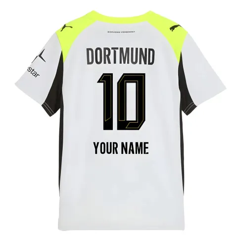 Official Your Name football shirt. This is the NEW Borussia Dortmund Away Shirt (Kids) for the 2025-2026 season which is manufactured by Puma and is available in all Childrens sizes.