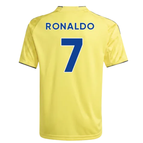 Official Cristiano Ronaldo football shirt. This is the NEW Al Nassr Home Shirt (Kids) for the 2025-2026 season which is manufactured by Adidas and is available in all Childrens sizes.
