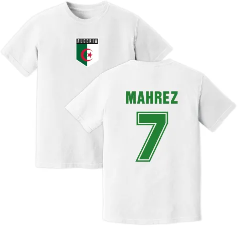 Featuring a clean white design accented with Algeria-inspired details, this training jersey offers a modern athletic fit ideal for training, match day, or casual wear. Mahrezs name and number on the back make it a standout tribute to a true football artist.