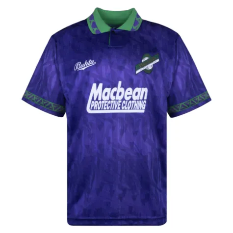 This classic away shirt features the distinctive design that graced Scottish football grounds over three decades ago. Crafted with attention to period-accurate detail, it showcases the traditional styling that made 1990s football kits so distinctive and collectible.