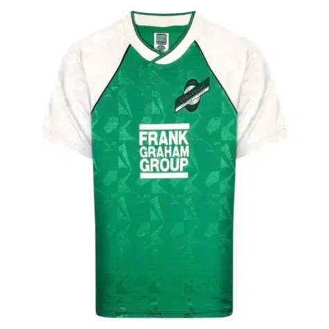 This retro shirt captures the essence of a memorable era in Hibernian's history, featuring the distinctive green and white design that made the Hibees instantly recognisable on pitches across Scotland. The traditional styling, complete with period-accurate collar and detailing, makes this more than just a football shirt it's a wearable piece of club history.