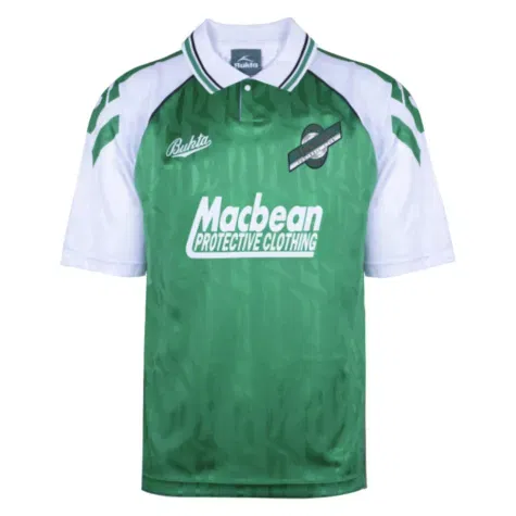 Step back in time with this stunning recreation of the iconic 1992 Hibernian home shirt, faithfully reproduced in collaboration with Bukta. This retro classic captures the essence of early '90s football fashion whilst delivering modern comfort for today's devoted Hibees supporter.