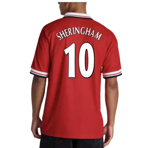 Official Sheringham, Teddy football shirt. This is the NEW Man Utd Retro Home Shirt for the 1998-2000 seasons which is manufactured by Score Draw and is available in all Adult sizes.