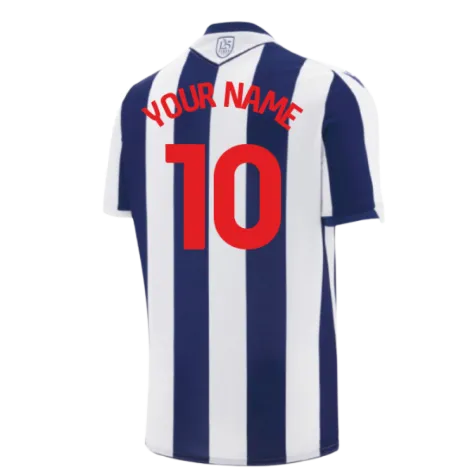 Official Your Name football shirt. This is the NEW West Bromwich Albion WBA Home Shirt for the 2025-2026 season which is manufactured by Macron and is available in all Adult sizes.