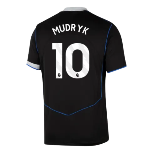 Official Mykhailo Mudryk football shirt. This is the NEW Chelsea Third Shirt for the 2025-2026 season which is manufactured by Nike and is available in all Adult sizes.