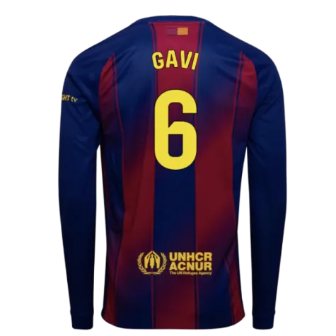 Official Gavi football shirt. This is the NEW Barcelona Home Long Sleeve Shirt for the 2025-2026 season which is manufactured by Nike and is available in all Adult sizes.