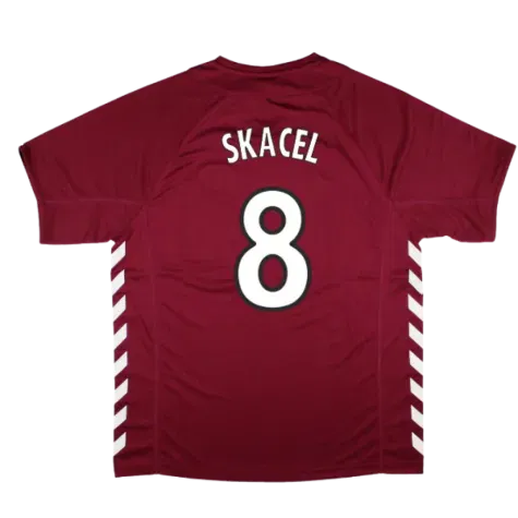 Official Rudi Skacel football shirt. This is the NEW Hearts Home Retro Shirt for the 2005-2006 season which is manufactured by Hummel and is available in all Adult sizes.