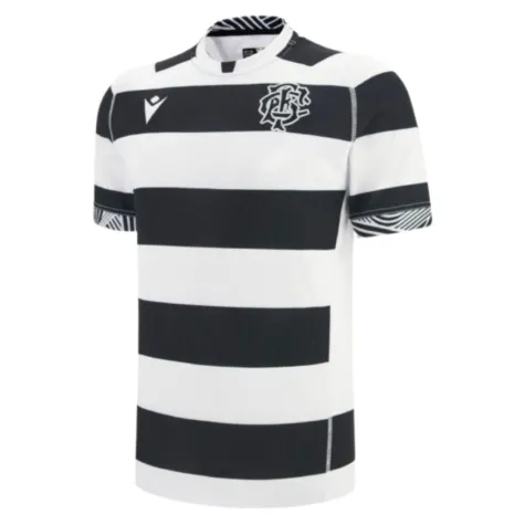 Introduce your aspiring rugby player to one of the sport's most iconic jerseys with this official Barbarians 25/26 home replica shirt for kids. Featuring the legendary black and white hooped design that's synonymous with rugby's most celebrated invitational side, this shirt embodies the adventurous spirit and attacking flair the Barbarians are renowned for worldwide.