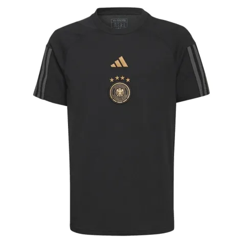 A comfortable option for kicking back. A juniors' version of the tops Germany's players and staff wear around the training ground, this adidas football tee combines soft fabric and ribbed details. Mimicking the team's home jersey, that centrally placed woven badge shows your heart beats for the four-time world champions.
