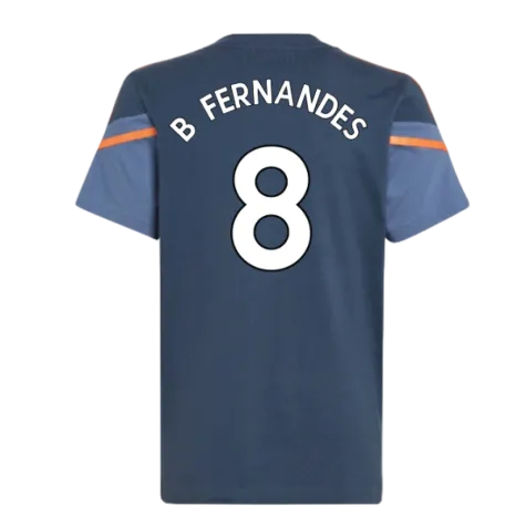 Official Bruno Fernandes football shirt. This is the NEW Man Utd Training Tee (Crew Navy) - Kids for the 2022-2023 season which is manufactured by Adidas and is available in all Childrens sizes.