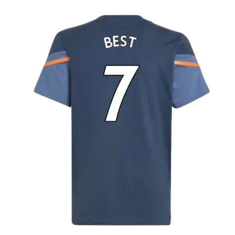 Official George Best football shirt. This is the NEW Man Utd Training Tee (Crew Navy) - Kids for the 2022-2023 season which is manufactured by Adidas and is available in all Childrens sizes.