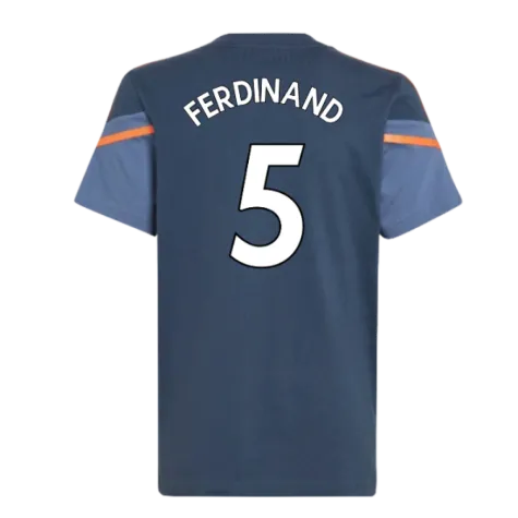 Official Rio Ferdinand football shirt. This is the NEW Man Utd Training Tee (Crew Navy) - Kids for the 2022-2023 season which is manufactured by Adidas and is available in all Childrens sizes.