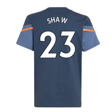 Official Luke Shaw football shirt. This is the NEW Man Utd Training Tee (Crew Navy) - Kids for the 2022-2023 season which is manufactured by Adidas and is available in all Childrens sizes.