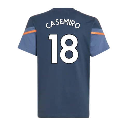 Official Casemiro football shirt. This is the NEW Man Utd Training Tee (Crew Navy) - Kids for the 2022-2023 season which is manufactured by Adidas and is available in all Childrens sizes.