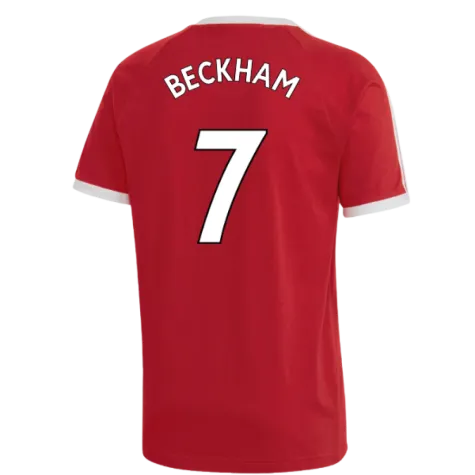Official David Beckham football shirt. This is the NEW Man Utd 3S DNA Tee (Red) for the 2022-2023 season which is manufactured by Adidas and is available in all Adult sizes.