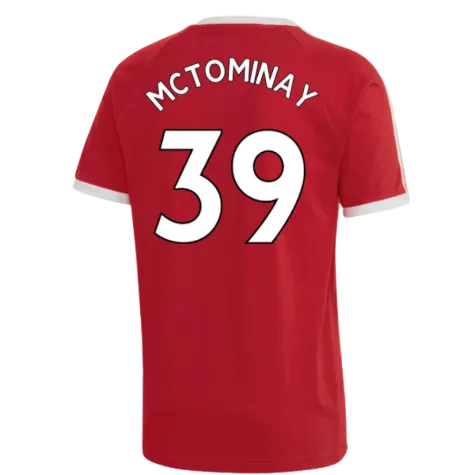 Official Scott McTominay football shirt. This is the NEW Man Utd 3S DNA Tee (Red) for the 2022-2023 season which is manufactured by Adidas and is available in all Adult sizes.