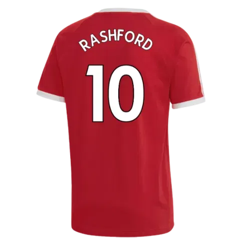 Official Marcus Rashford football shirt. This is the NEW Man Utd 3S DNA Tee (Red) for the 2022-2023 season which is manufactured by Adidas and is available in all Adult sizes.