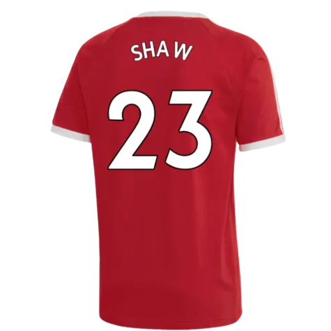 Official Luke Shaw football shirt. This is the NEW Man Utd 3S DNA Tee (Red) for the 2022-2023 season which is manufactured by Adidas and is available in all Adult sizes.