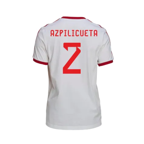 Official Cesar Azpilicueta football shirt. This is the NEW Spain DNA 3S Tee (White) for the 2022-2023 season which is manufactured by Adidas and is available in all Adult sizes.