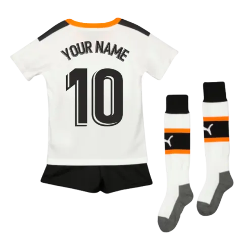 The Valencia C.F 2019-2020 home mini kit from PUMA which includes a shirt, shorts & socks all featuring club branding details throughout! The four tonal stripes vertically down the front of the shirt represent the Valencian flag whilst black rubber printed Formstrip with PUMA Branding feature on either shoulder for an extra boost in style that any fan would be proud wear out & about when combined it shows them youre part of Suarez legacy at Mestalla Stadium.