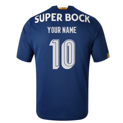 This official Your Name FC Porto away shirt showcases a distinctive and modern design that captured attention throughout the 2020-21 campaign. The shirt features a unique colour scheme that sets it apart from typical away kits, making it a standout piece in any football shirt collection. The iconic FC Porto crest is proudly displayed on the chest, symbolising the club's illustrious history of domestic dominance and European glory.