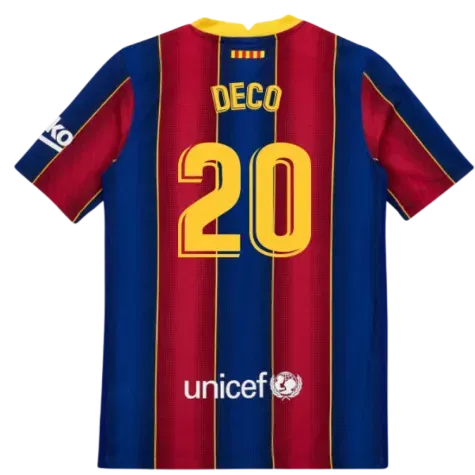 Official Deco football shirt. This is the NEW Barcelona Vapor Match Home Shirt (Kids) for the 2020-2021 season which is manufactured by Nike and is available in all Childrens sizes.