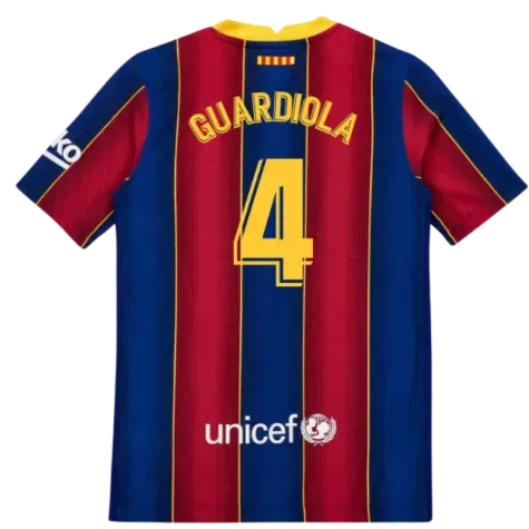 Official Pep Guardiola football shirt. This is the NEW Barcelona Vapor Match Home Shirt (Kids) for the 2020-2021 season which is manufactured by Nike and is available in all Childrens sizes.