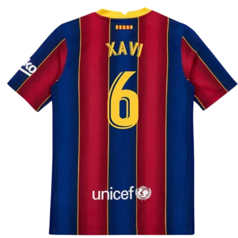 Official Xavi football shirt. This is the NEW Barcelona Vapor Match Home Shirt (Kids) for the 2020-2021 season which is manufactured by Nike and is available in all Childrens sizes.
