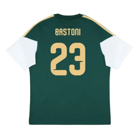 Official Alessandro Bastoni football shirt. This is the NEW Italy Training Tee (Green) for the 2025-2026 season which is manufactured by Adidas and is available in all Adult sizes.