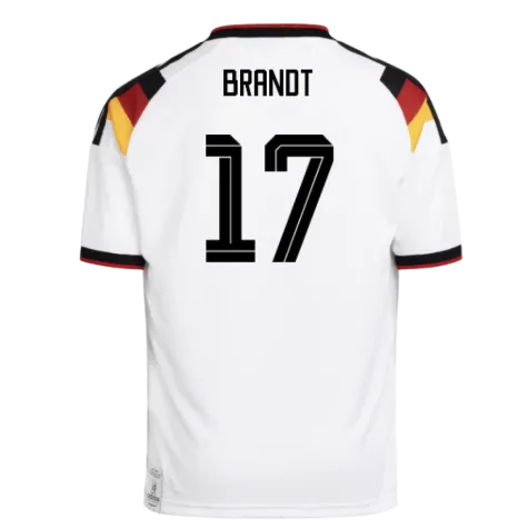 Official Julian Brandt football shirt. This is the NEW Germany Home Mini Kit for the 2026-2027 season which is manufactured by Adidas and is available in all Childrens sizes.