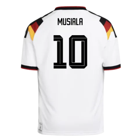 Official Jamal Musiala football shirt. This is the NEW Germany Home Mini Kit for the 2026-2027 season which is manufactured by Adidas and is available in all Childrens sizes.