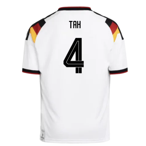 Official Jonathan Tah football shirt. This is the NEW Germany Home Mini Kit for the 2026-2027 season which is manufactured by Adidas and is available in all Childrens sizes.