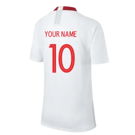 Inspire the next generation of football talent with this official Your Name Poland home shirt from the 2018-2019 season. Designed for young supporters, this classic kit captures the pride and passion of the Polish national team in their distinctive all-white colours.