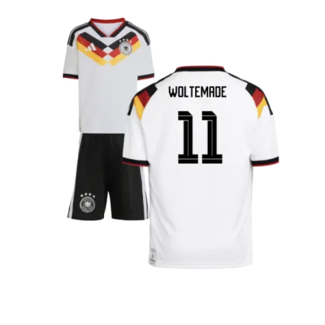 Official Nick Woltemade football shirt. This is the NEW Germany Home Mini Kit for the 2026-2027 season which is manufactured by Adidas and is available in all Childrens sizes.
