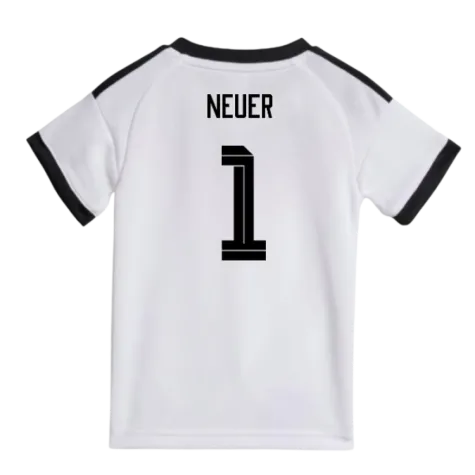 Official Manuel Neuer football shirt. This is the NEW Germany Home Baby Kit for the 2026-2027 season which is manufactured by Adidas and is available in all Childrens sizes.