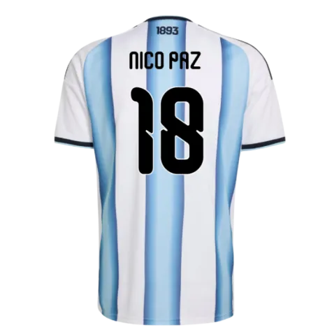 Official Nico Paz football shirt. This is the NEW Argentina Home Shirt for the 2026-2027 season which is manufactured by Adidas and is available in all Adult sizes.