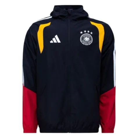 Stay prepared for anything with the official Germany 2026 Adidas All-Weather Jacket in sleek black. Engineered for true supporters who won't let the elements dampen their passion, this versatile jacket combines iconic German football heritage with cutting-edge weather protection technology.