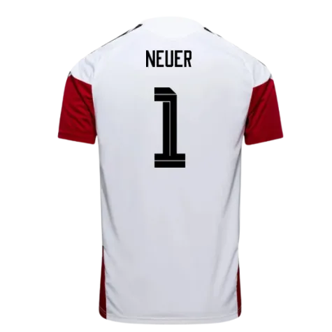 Official Manuel Neuer football shirt. This is the NEW Germany Training Jersey (White) for the 2026-2027 season which is manufactured by Adidas and is available in all Adult sizes.